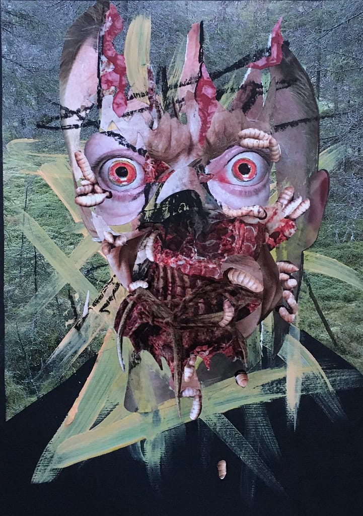 My style is very much inspired by nature, anatomy, bugs, diseases, metal, gore, horror movies and filth in general. There is so much beauty in decay and nasty stuff, and that’s what I wanna show people. I also love exploring darker themes, cuz they feel much more like a home for me. I still remember when one of my three older brothers came home with the first carcass collage covers made by Jeff Walker when I was a kid and being absolutely mesmerized by them. Might have been 7-8 old at the time. I’m still beating myself up for not starting with collage already then, but it thankfully came back to me later in life.