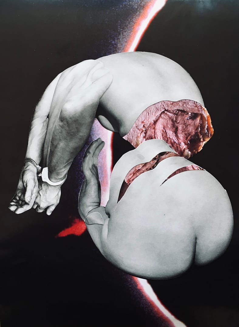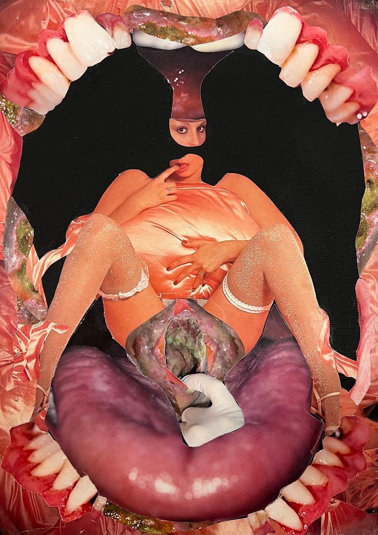 A: Hello! My name is Anne Margrete Sjøflot and I also go under the name Fleshflies on IG. I was born in a little mountain town in Norway called Røros, but I moved to Trondheim when I was 18 to study. I studied philosophy and did my master’s paper on metaphysics, more precisely on the philosophy of time. I’ve always been creating stuff since I was a kid, drawing, painting and making strange little sculptures, but I never felt I found my medium until I started doing collage back in 2008. I was completely hooked from the first second of cutting and glueing, with the surrealism and potential in found images that I could destroy and recreate into something completely different. Also, the sound of touching, cutting and tearing paper has an almost ASMR-like effect on my brain.